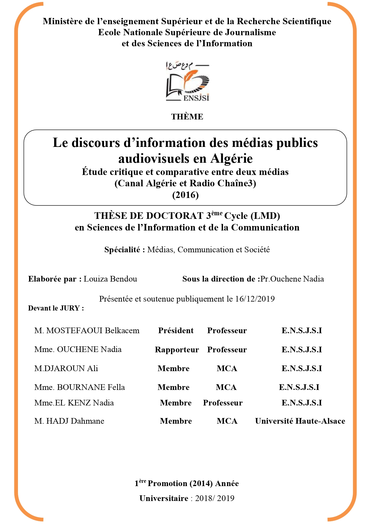 Le discours d\'information des médias publics audiovisuels en Algérie -Etude critique et comparative entre deux médias: canal Algérie et la chaîne (3)2016